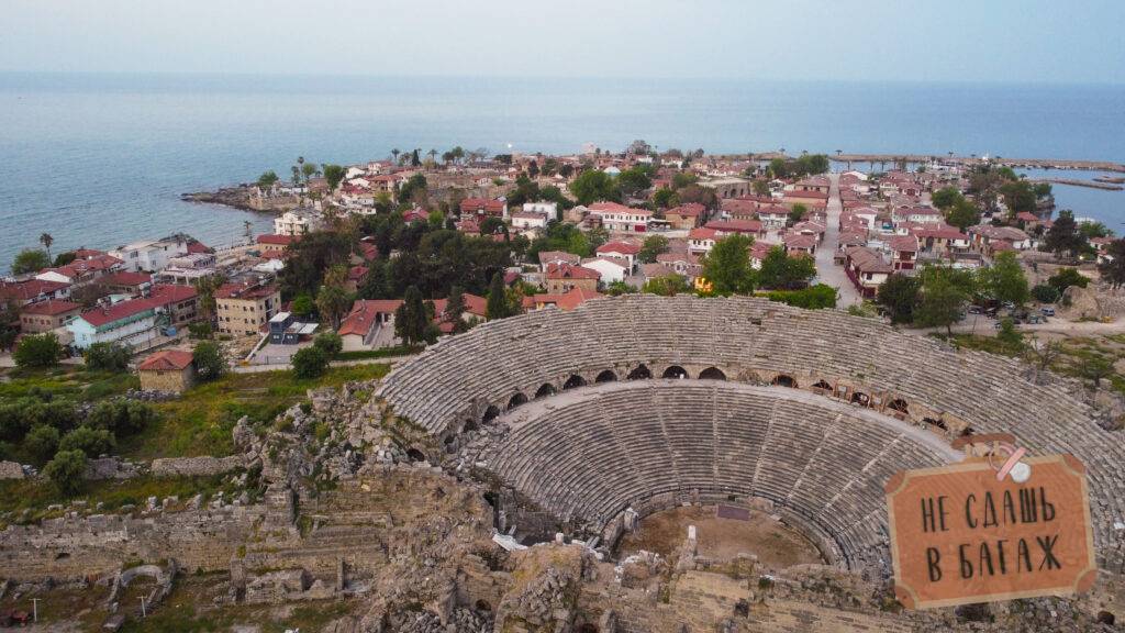 Чтобы зайти в музей Сиде и амфитеатр нужно приобрести входной билет. Мы внутрь не заходили, а просто на рассвете полетали на дроне.