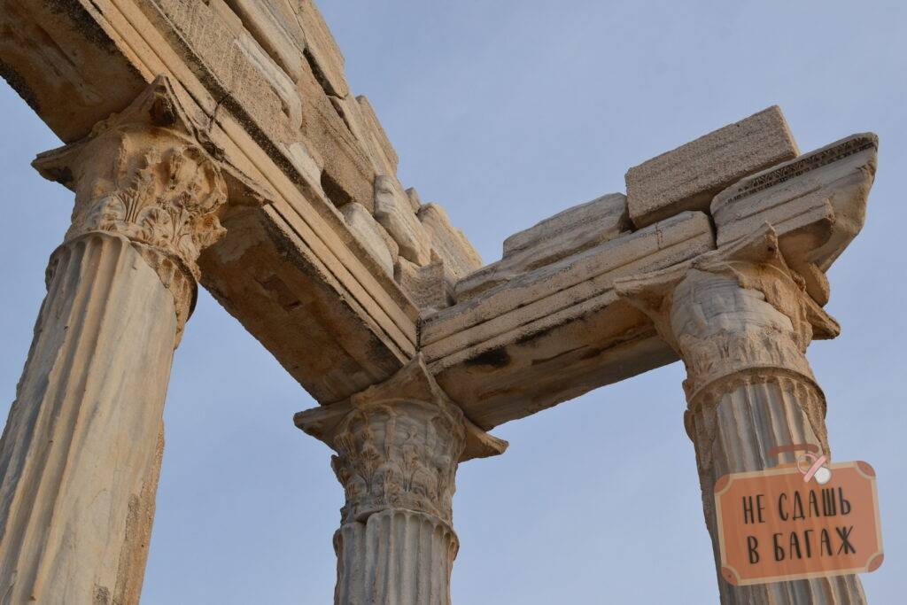 Храм Апполона был построен во II веке до н.э. Был разрушен то ли при строительстве атриума христианской базилики, то ли в результате землетрясения. Храм видеть мы не можем, зато в 1991 году отреставрированы мраморные колонны с головами медуз наверху. Здесь классно встречать закаты, ведь солнце садится прямо над морем. Но на рассвете здесь тоже магический. Ворота красивы как с суши, так и с моря.