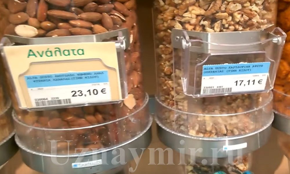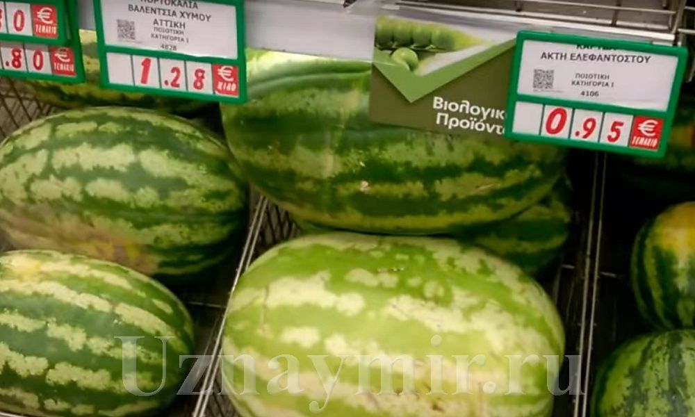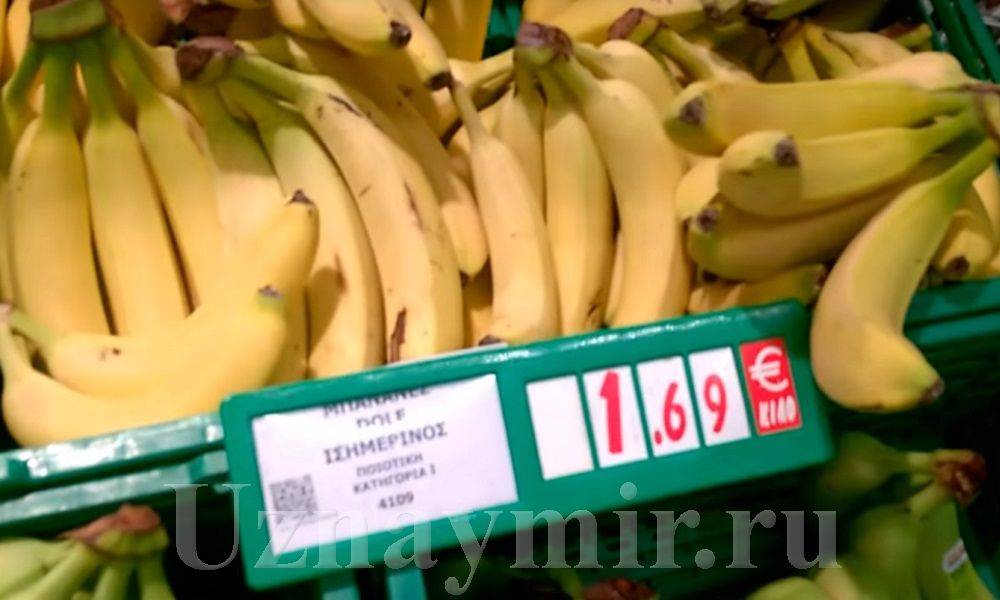 В супермаркетах Греции яблоки стоят 40 – 43 руб. за кг, бананы – 90 руб., апельсины – 50 – 55 руб., арбузы и дыни – 63 – 71 руб.