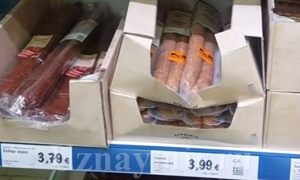 | Колбаса (1 кг) Цена в Материковой Греции составляет около: | 1,600 RUB | 20 USD | 18 EURO |