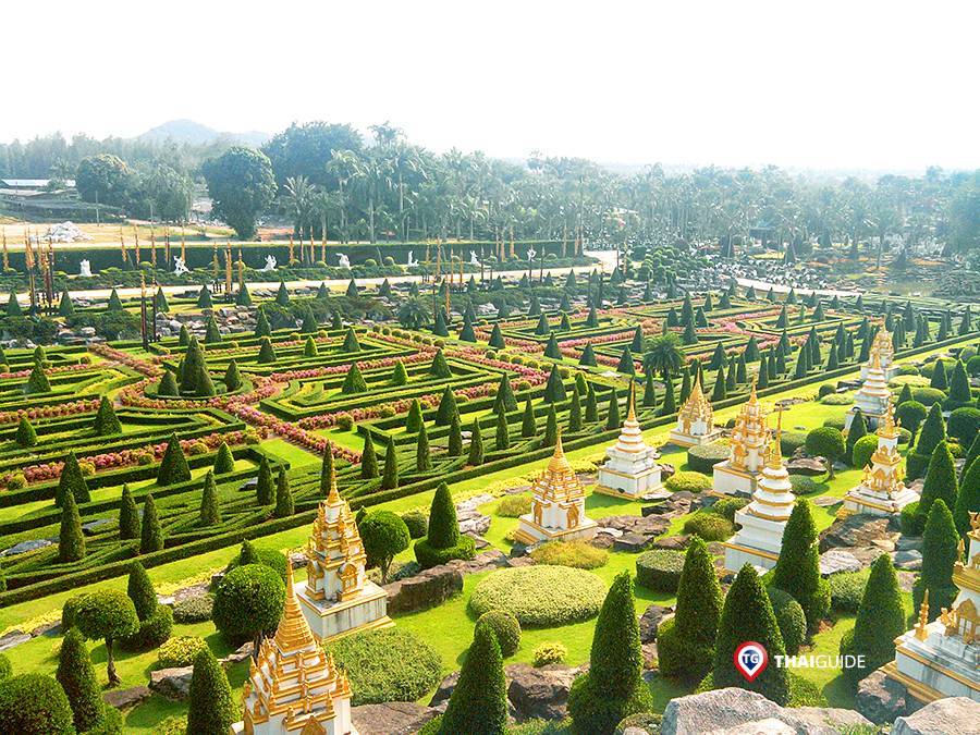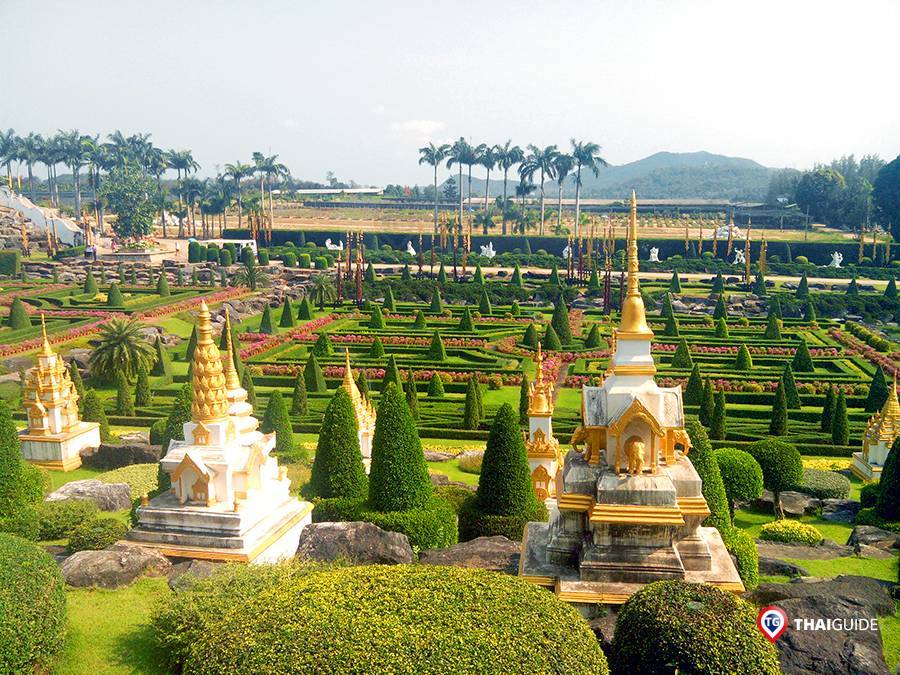 Нонг Нуч – это грандиозный ландшафтный проект, в котором самым невероятным образом сочетаются азиатский и европейский стили, национальные скульптуры, беседки и сказочные домики соседствуют с версальским парком, где кустарники и газоны имеют правильные геометрические формы.