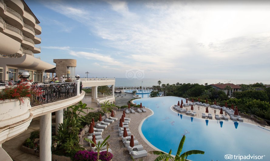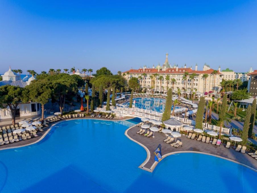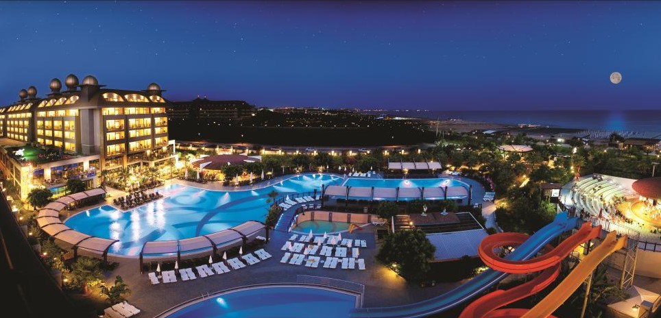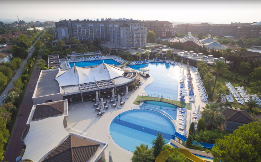 Курортный резорт класса «люкс» находится в городе Белек, на побережье Средиземного моря. Он занимает огромную территорию площадью более 100 000 м² и предлагает гостям комфортное проживание, большой выбор развлечений и высокий уровень сервиса. От одного только вида здания отеля руки так и тянутся к фотоаппарату, ведь оно напоминает старинный средневековый замок.