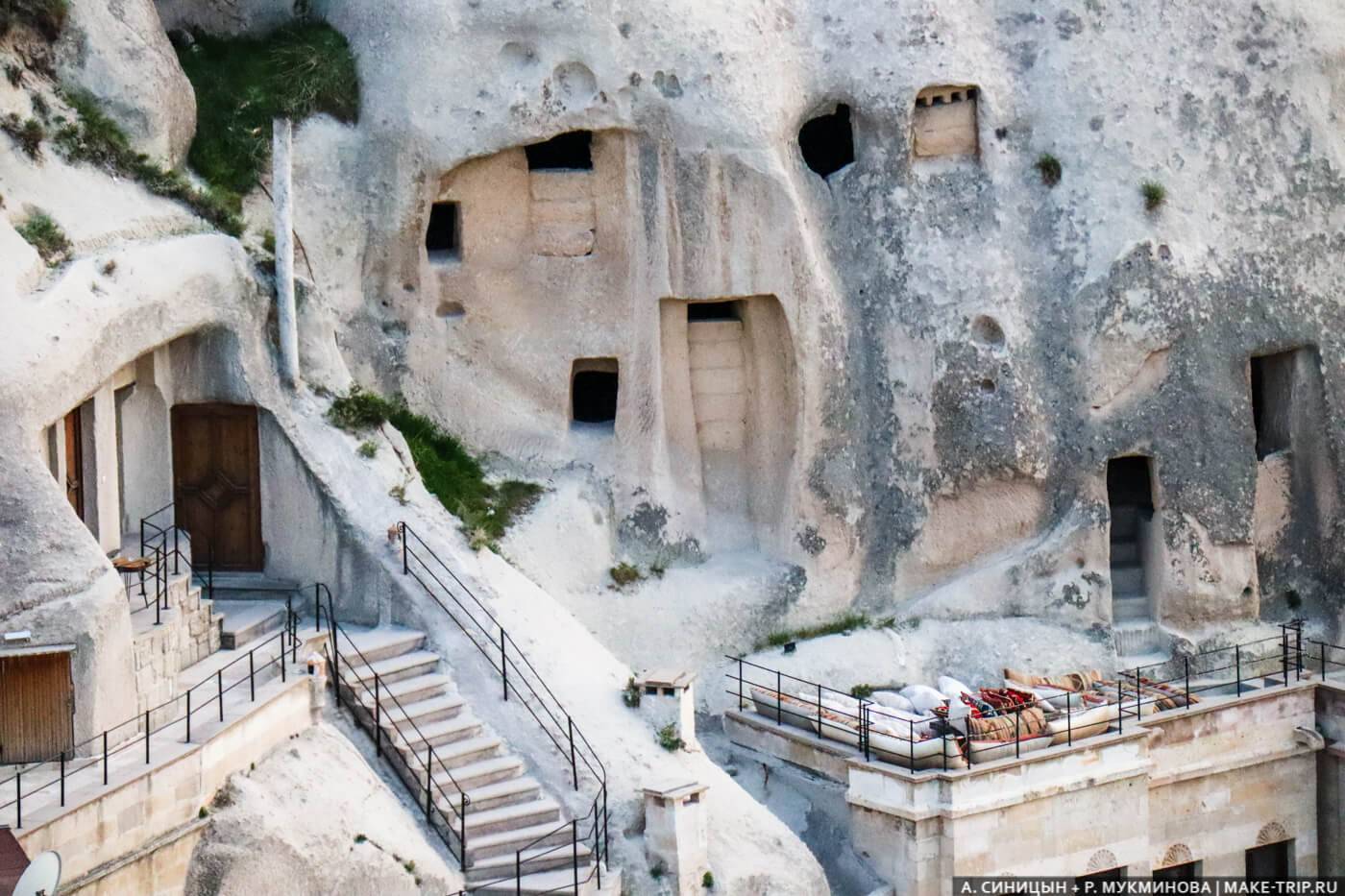 Насколько я поняла, почти все отели только частично находятся в скалах — у них есть и пещерные, и обычные номера, надстроенные над пещерными или достроенные рядом. Бывают отели обычные со стилизацией под пещеру. Только по фото нелегко понять, где настоящий пещерный отель — даже слово cave в названии не гарантирует подлинность!