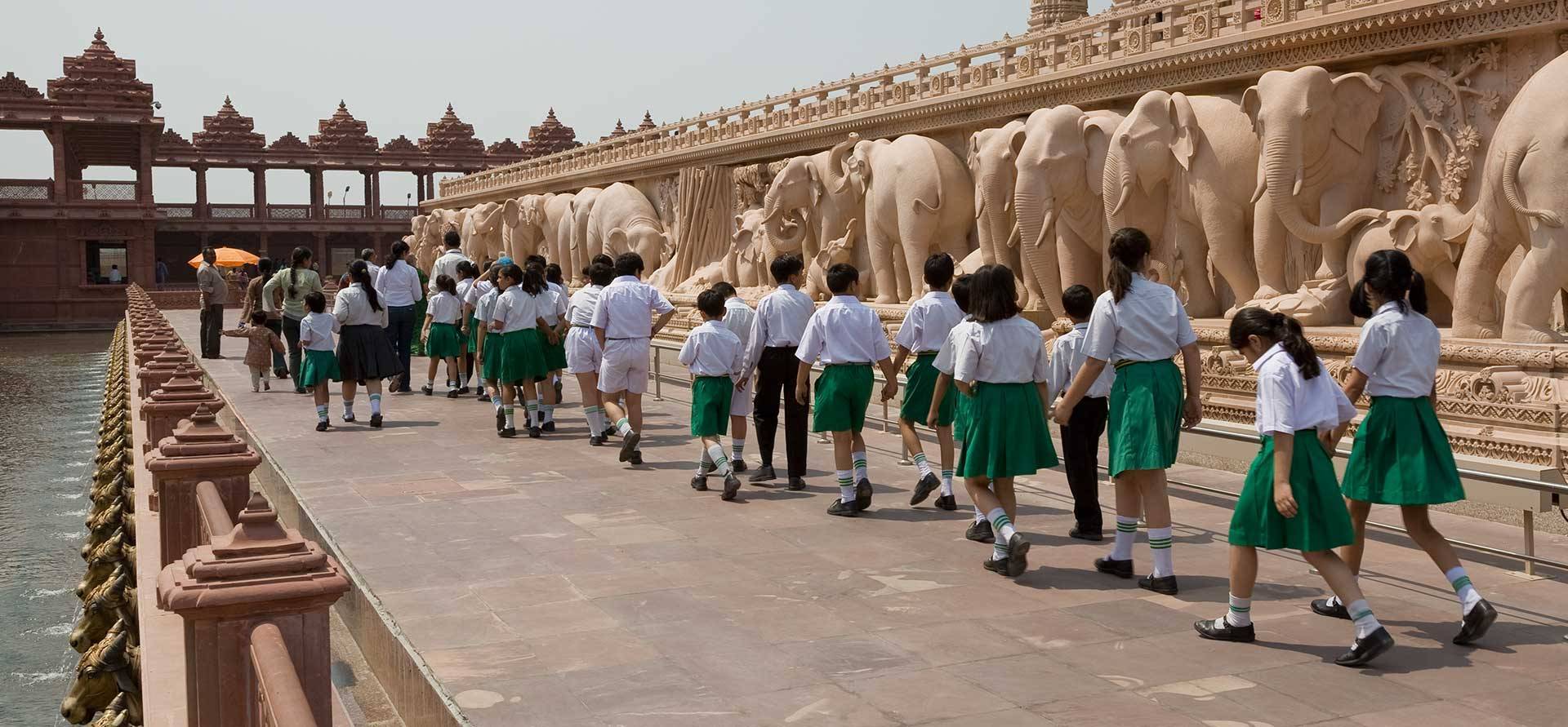 Хотя только недавно завершенный (он открылся в 2007 году), великолепный храм индуистского Акшардема выглядит так, как будто он может быть вековым. Это великолепное здание, окруженное сложной и сложной резьбой, привлекает бесчисленное количество посетителей своей величественной красотой. Основные моменты включают потрясающий 43-метровый главный памятник с богатой резьбой животных, растений, богов, танцоров и музыкантов, сделанных из розового песчаника и мрамора. Особо следует отметить 234 декоративные столбы, поддерживающие его девять куполов, а также потрясающую каменную дань слонам, центральным элементом которой является массивная 3000-тонная статуя одного из этих зверей. Другие интересные объекты включают театр, показывающий фильм, рассказывающий о строительстве здания, веселую 15-минутную прогулку на лодке, изображающую богатую историю Индии и разнообразную культуру, и впечатляющий Ягнапуруш Кунд, большой музыкальный фонтан, который является особым удовольствием при освещении ночью ,