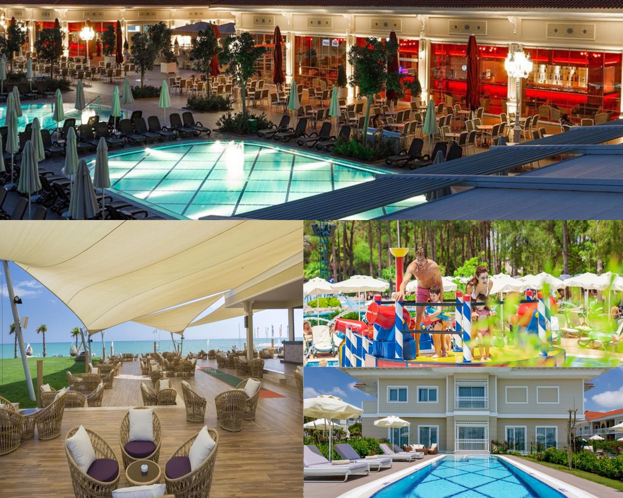 Есть ежедневная развлекательная программа для детей, детская площадка и даже парк развлечений с каруселями, колесом обозрения и батутом. На территории 6 ресторанов: Ipek Yolu со шведским столом, Dragon с азиатской кухней, Dolce Vita Family с итальянскими блюдами, а также La Cascade, Kebap House и Mexican. Преимущества: 1 линия моря, детские дискотеки, развлечения для детей от 0 до 18 лет. Минусы: Слабая анимация для взрослых, нет русскоговорящего персонала.