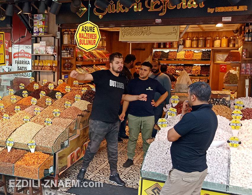 На фото: местные жители общаются на рынке, Стамбул