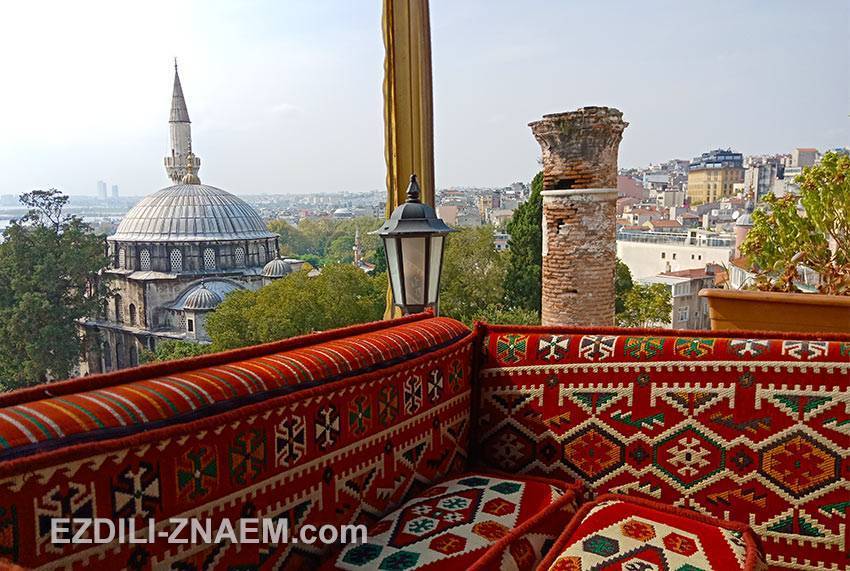 На фото: вид с террасы на крыше стамбульского кафе, район Султанахмет