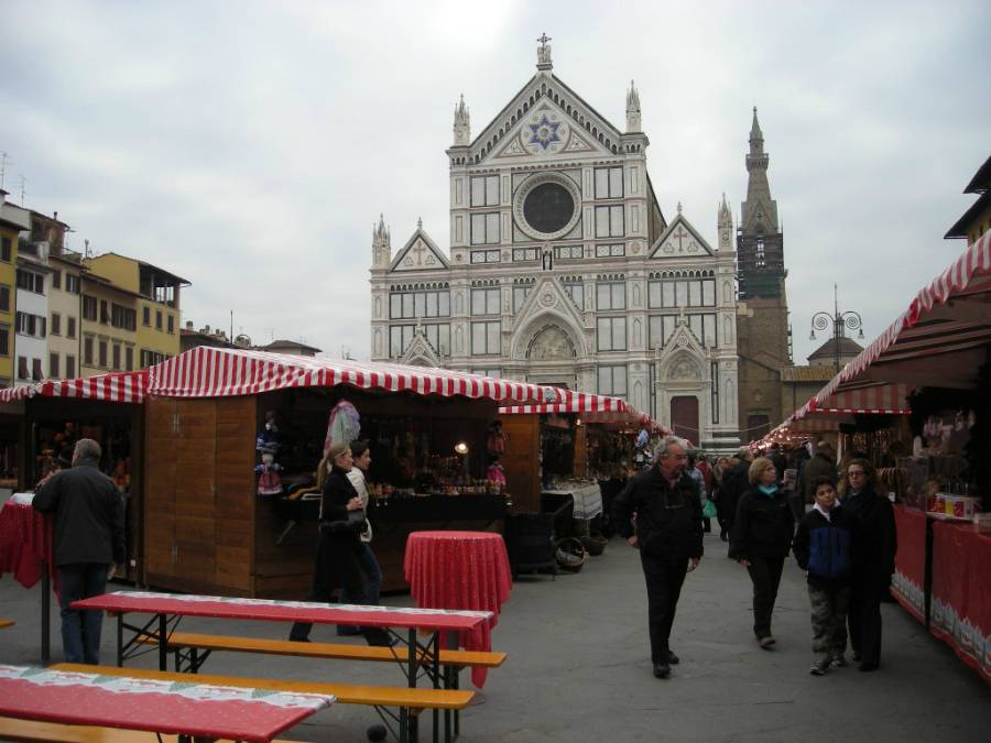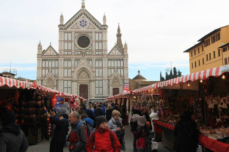 Франсисканская базилика Святого Креста (13 века) обеспечивает прекрасный рождественский фон для ежегодной ярмарки во Флоренции. 50 прилавков с рождественскими подарками и другими товарами (украшения и продукты) — идеальное место, где можно купить все, что необходимо для празднования без лишних нервов и потери времени.