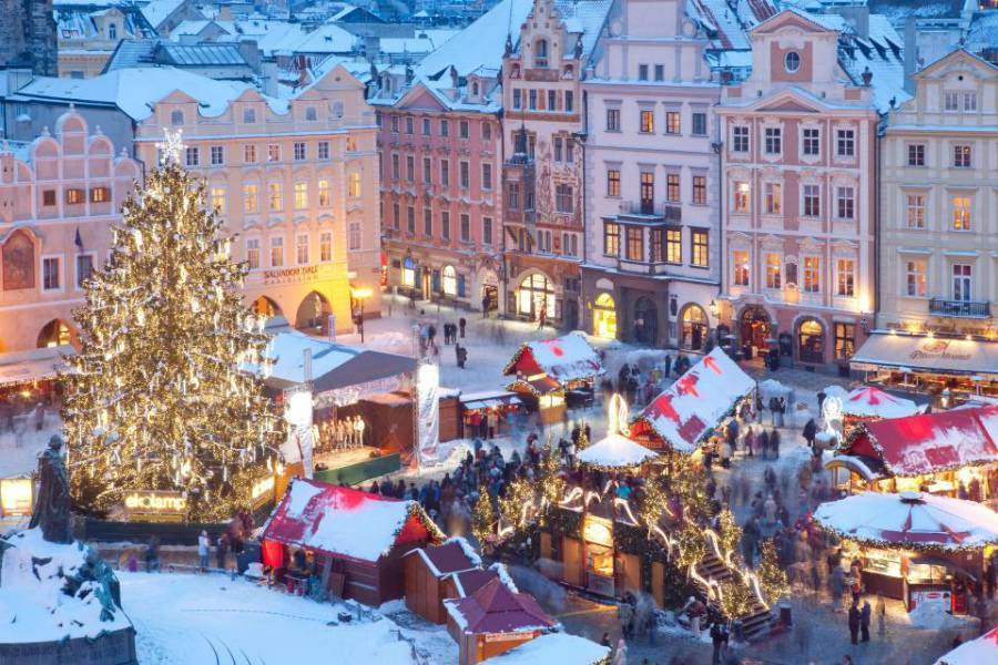 Самым красивым городом Европы в Рождество считается Прага. Известнейшая столичная ярмарка расположилась на Староместской площади. В этом месте со всех сторон слышится гул, по улице идут толпы со счастливыми улыбками на лице. В центре площади стоит нарядная елка, а в вечернее время вы сможете сходить на концерты и театральные представления. Поблизости вы сможете увидеть довольно много палаток с разными вкусными блюдами, откуда доносятся просто ошеломляющие ароматы запеченного мяса, вкуснейших колбасок, классической сладкой выпечки, именуемой трдельник, пьянящего глинтвейна, грога и медовухи. В сувенирных палатках вы сможете увидеть чудесных марионеток, потрясающие картины и елочные игрушки.