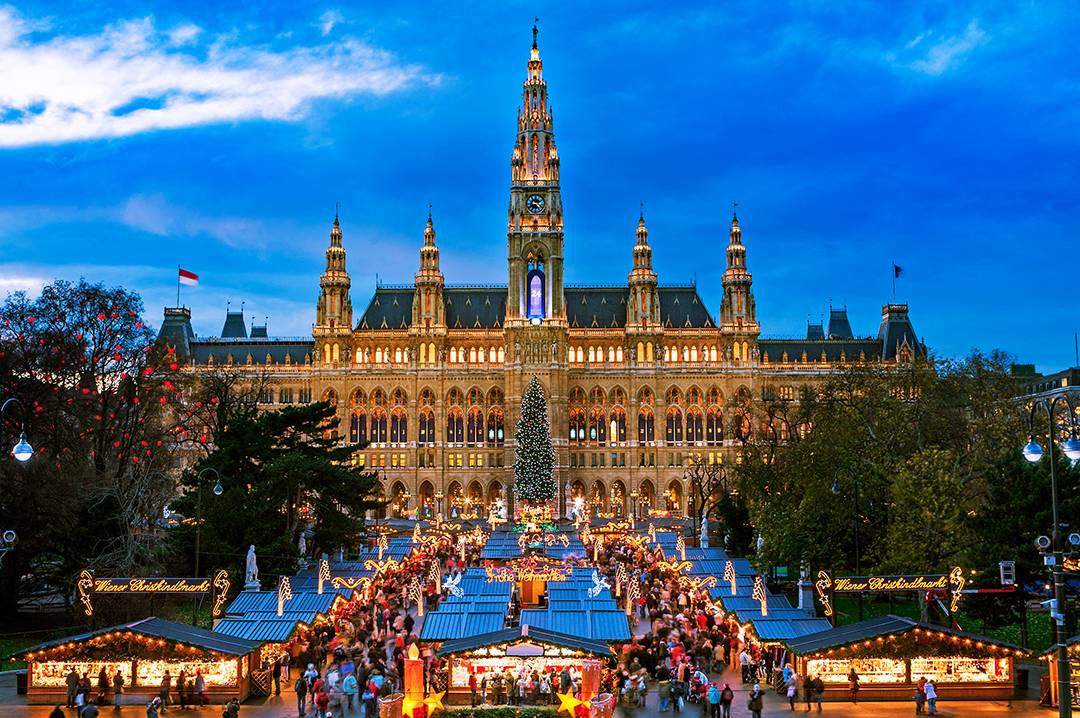 Еще в тринадцатом веке в Вене начали проводить рождественские ярмарки. Сегодня этот прекрасный город привлекает российских туристов, мечтающих провести зимние праздники, попав сюда на борту теплохода средиземноморского круиза. Больше десятка рынков, собравших около 150 торговых точек работают с 12 ноября по 24 декабря. Прямо перед мэрией, на площади Rathausplatz покупают наряженных кукол, игрушечные деревянные домики, шерстяные теплые шляпы, кожаную нарядную одежду, сердца из пряника.