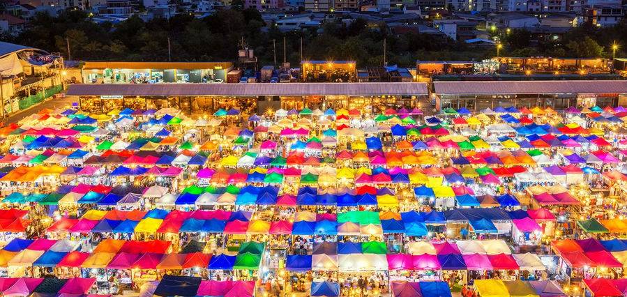 Чатучак в Бангкоке, крупнейший в мире рынок выходного дня, его любят как местные жители, так и туристы. Он может многое предложить. Есть более 8000 крытых и открытых киосков, разделенных на 30 секций для облегчения навигации, а также информационные киоски. Одежда, обувь, аксессуары и туристическое снаряжение, прилавки с едой и напитками повсюду, посещение этого рынка требуют от человека как минимум целого дня прогулок и покупок. Особенно примечателен выбор одежды Chatuchak: от праздничной одежды до дизайнерских вещей и сувениров с причудливыми лозунгами и национальными орнаментами. Эта страна торгов и сделок также превращается в ночное время в блошиный рынок, куда приезжают люди из квартала красных фонарей, чтобы продать часы и украшения.