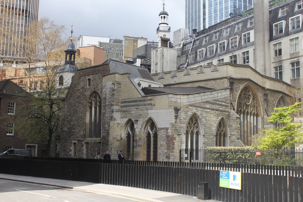 По соседству с современным исполином находится вот такая древняя, но действующая церковь Святой Елены, заложенная еще в 13-м веке. Дважды рядом с этим зданием взрывалась бомба, частично разрушив его, но церковь удалось восстановить и даже внести новые современные улучшения.