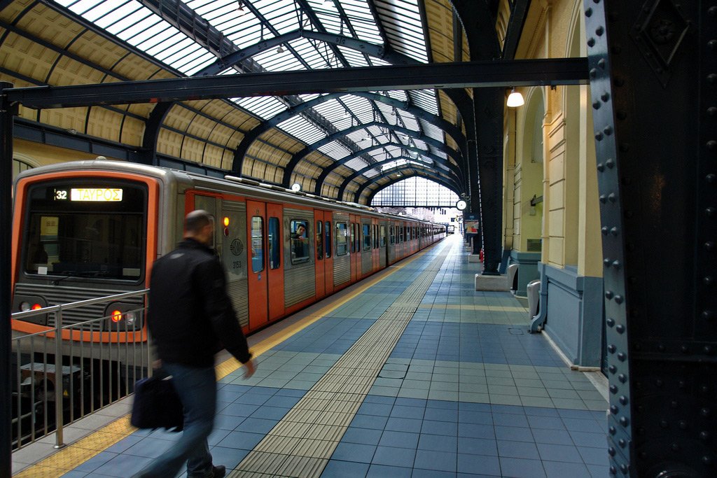 Метро в Афинах очень старое. Первая линия в городе Афины была открыта в 1869 г., всего через 6 лет после открытия лондонского метро. Она имела вид обычной одноколейки, протянувшейся от площади Омония до порта Пирей по центру Афин. Ездил по этой дороге обыкновенный паровоз. Назвать эту дорогу полноценным метро сложно – она полностью проходила над землей. Первый подземный туннель, который соединил площадь Омония с районом Тисио, построен был только в 1889 году — через два десятилетия после открытия дороги. Именно после появления этого тоннеля железная дорога превратилась в полноценный метрополитен.