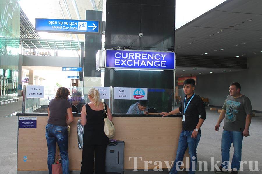 В аэропорту есть обмен валюты, и вы можете обменять 100 — 200 долларов на первое время. Сразу возле выхода находится стойка шатлбасов, небольших автобусов, на которых можно доехать до центра — города Зыонгдонг. Поездка будет стоить 50 000 донгов (2,3 доллара). Такси до города будет стоить 100 000 — 150 000 донгов. До Онг Ланга уже 250 000 донгов.