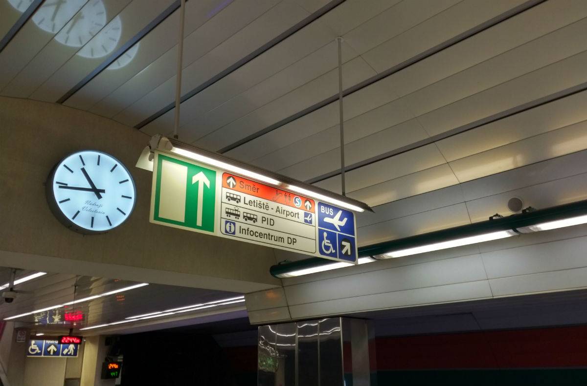 С этой станции в аэропорт уезжает автобус №119. Именно он является главным автобусом, на котором можно добраться до аэропорта Праги. Когда вы приедете на станцию метро, вам нужно выйти наверх, используя указатели BUS с иконой самолета. Эти указатели расположены на видных местах, например: