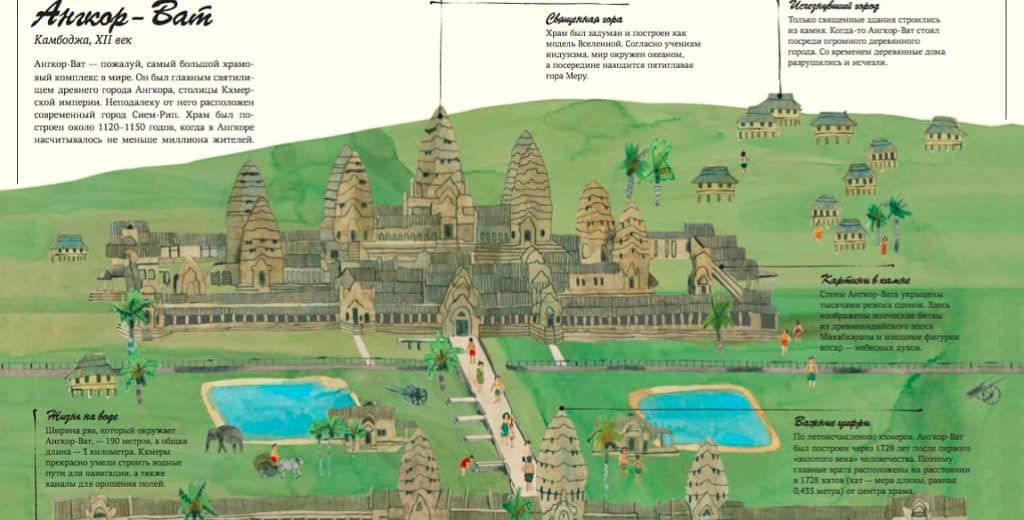 Храм Ангкор Ват – образец индуистской архитектуры, посвящен богу Вишну. Ангкор Ват в Камбодже построен из 5 миллионов тонн песчаника. Каменные блоки нарезаны ровно и плотно прилегают друг к другу, так что между ними не входит лезвие ножа.