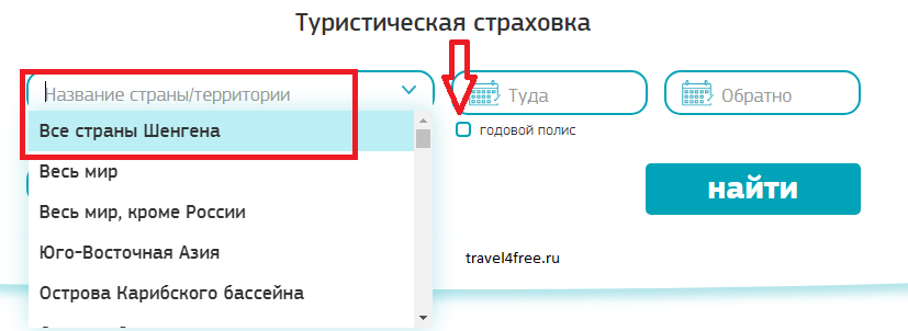 - Отметьте галочкой годовой полис. Это дешевле, чем покупать полис под каждую поездку!