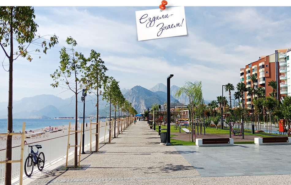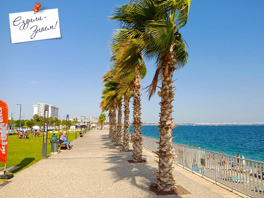 Большинство недорогих отелей Анталии расположены вдоль длинного галечного пляжа Коньяалты. Самое примечательное в этом районе — длиннейшая обустроенная набережная, которая тянется вдоль пляжей на 7 км. С красивым видом на горы и море.