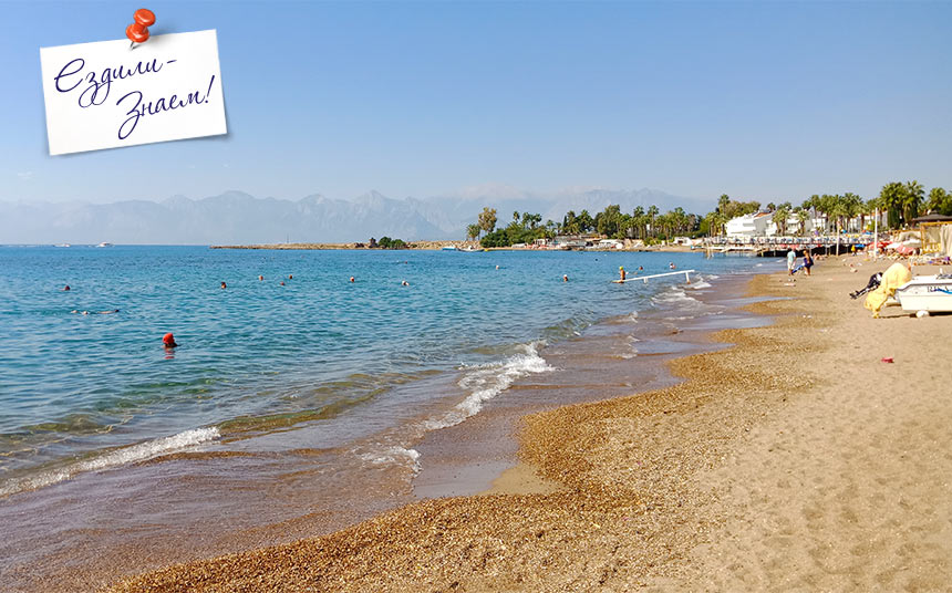 В Анталье несколько пляжей. Море чистое, температура воды комфортнее всего с июля по сентябрь.