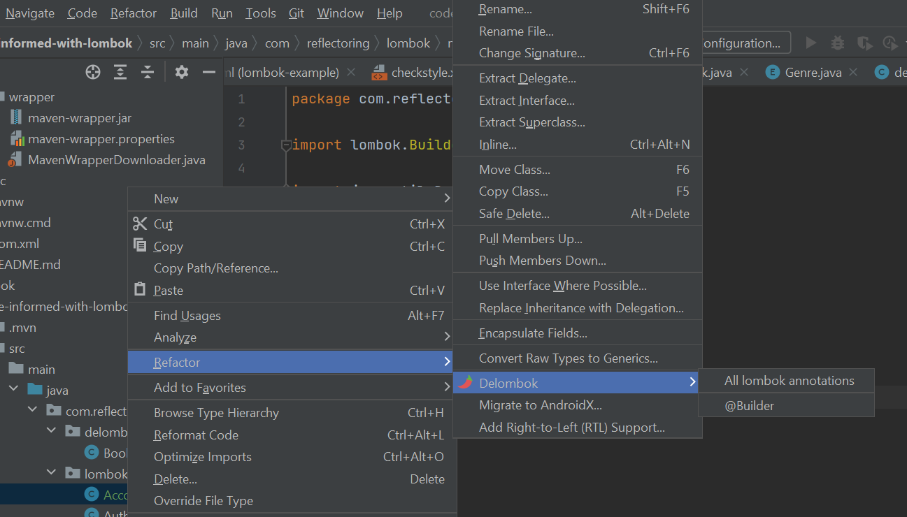Let’s use Intellij’s “Delombok” feature to understand the code written behind the scenes.