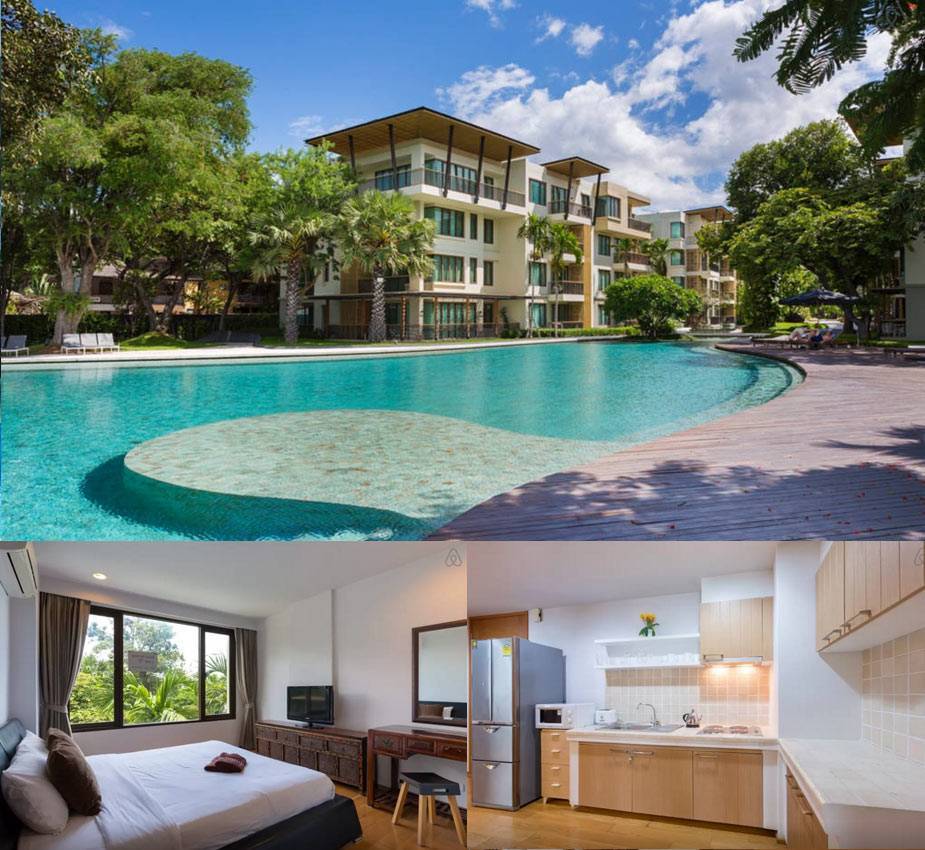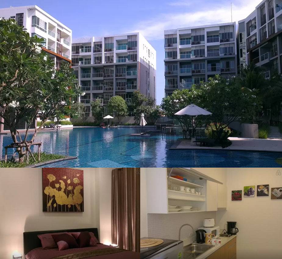 Baan Sansuk Condo – находится в районе Такиаб недалеко от Цикада маркет. Есть комнаты с одной спальней, двумя и более. Полноценная кухня. Если повезет, можно взять комнату с видом на море.