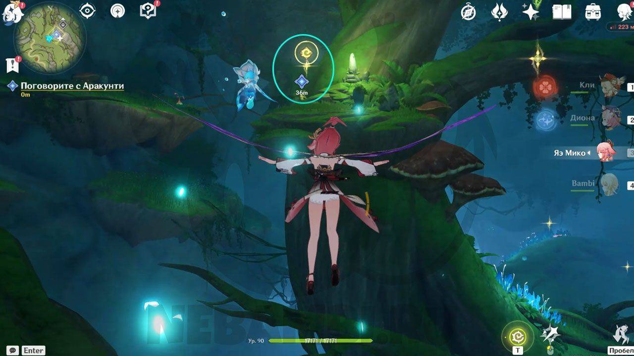Теперь вместе с Аракунти необходимо найти ветви. Для этого нужно забраться на большое дерево.