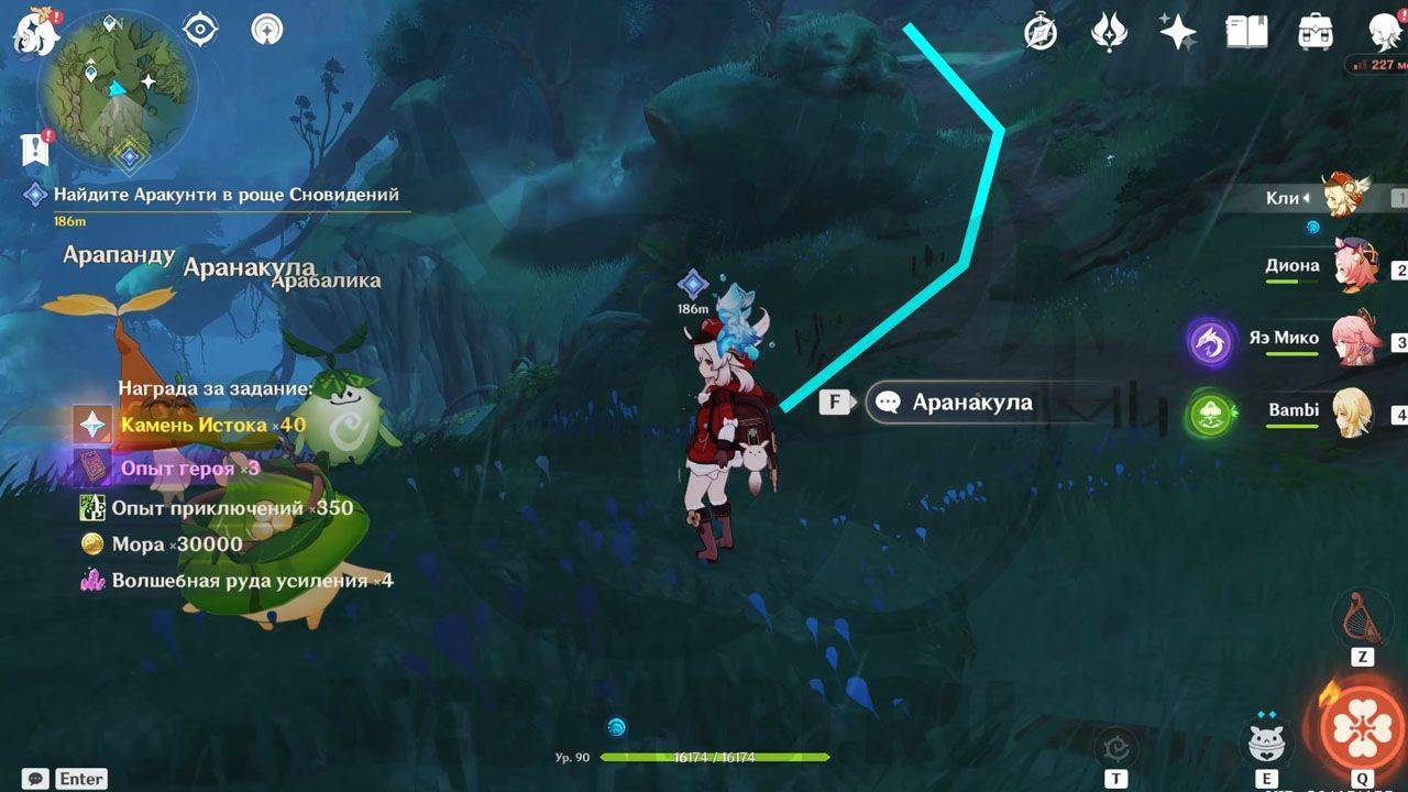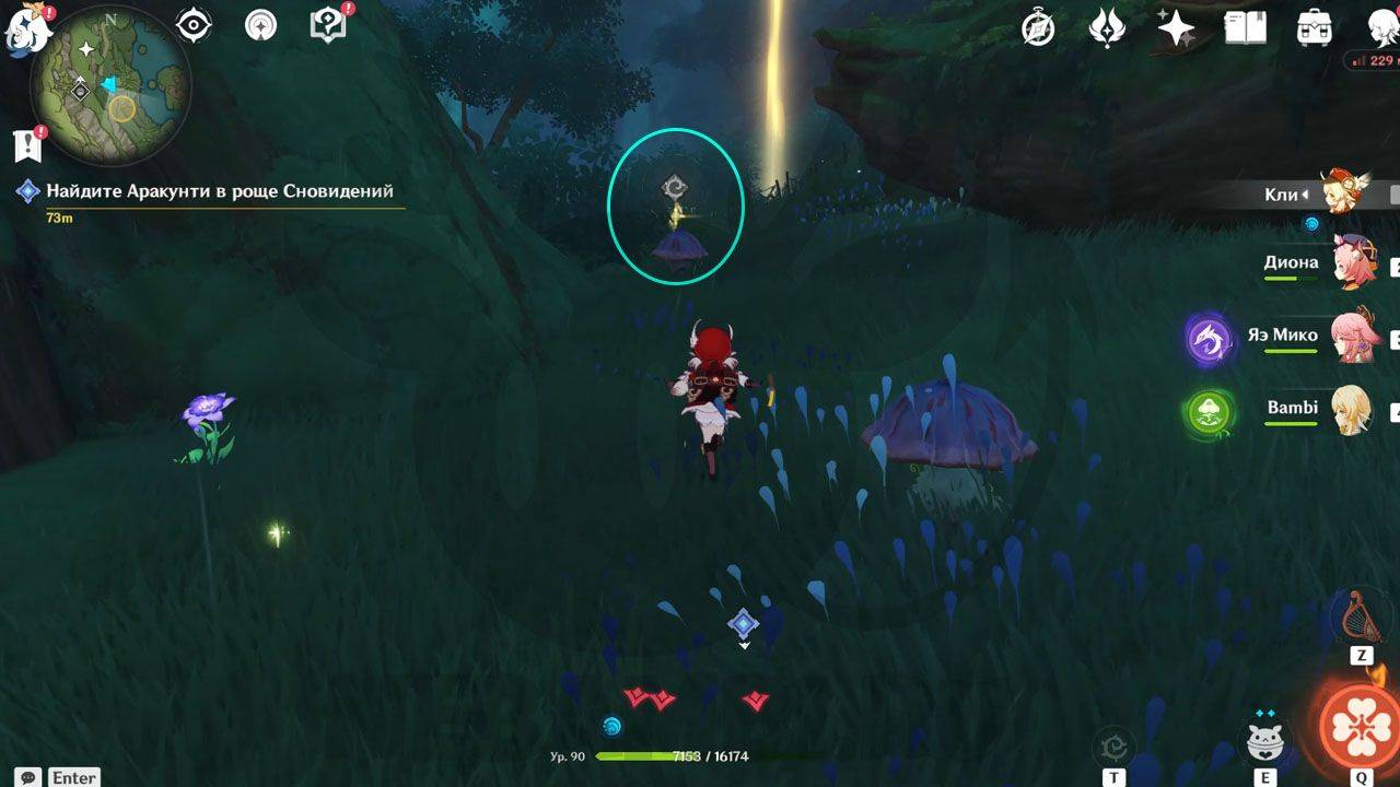 Переместитесь к Статуе Архонтов к юго-востоку от Монумента Ясны и спуститесь еще южнее. Здесь вы столкнетесь с несколькими плесенниками, окружившими аранару. В журнале квестов появится задание: победите противников и поговорите с Арапанду.