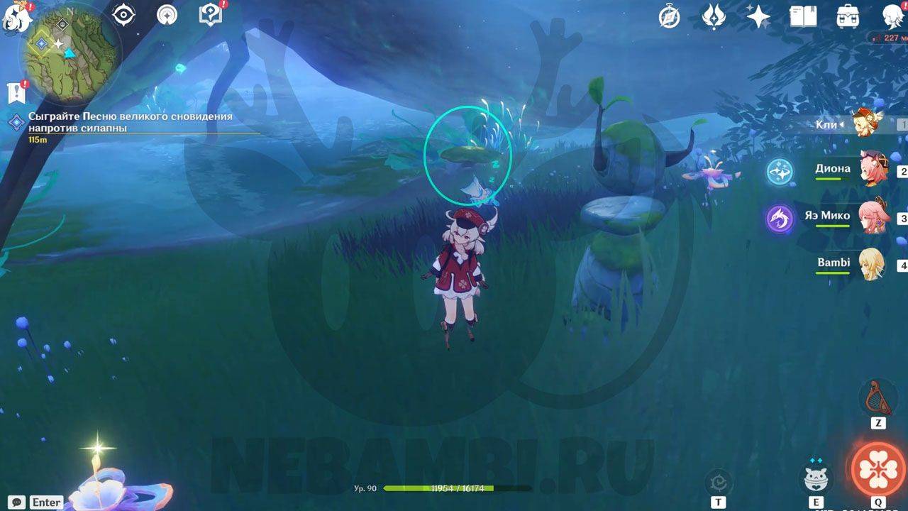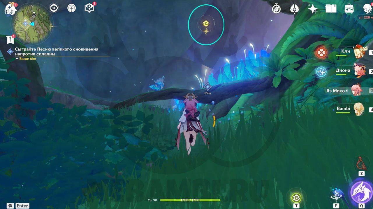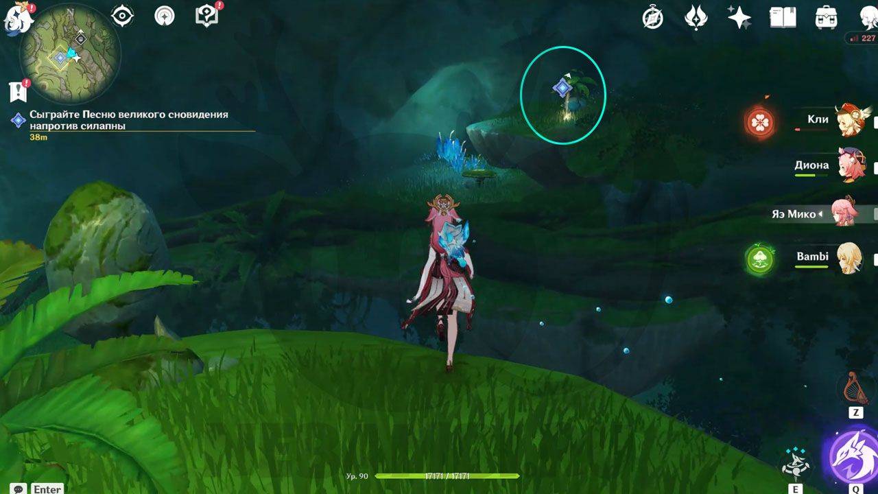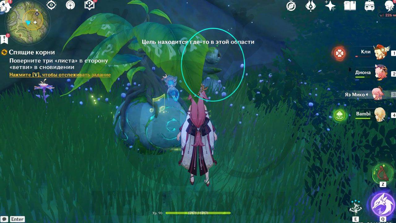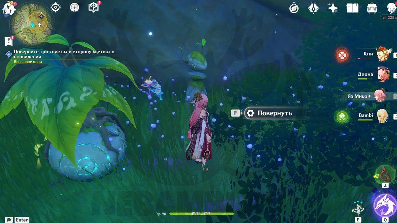 Активируйте Бутон соцветия с помощью Дендро умений, чтобы появились символы, которые помогут вам потом для быстрого перемещения.