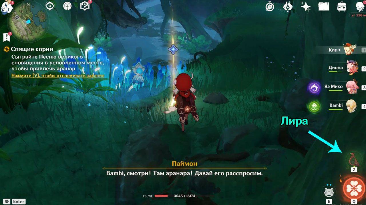 Для продолжения задания вам нужно сыграть Песню великого сновидения на старинной лире в отмеченном на карте месте и попасть в мир грез.