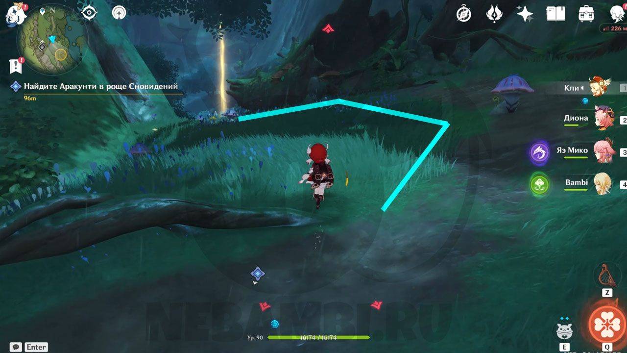 Чтобы найти рощу Сновидений и Аракунти, отправляйтесь по этой тропинке.