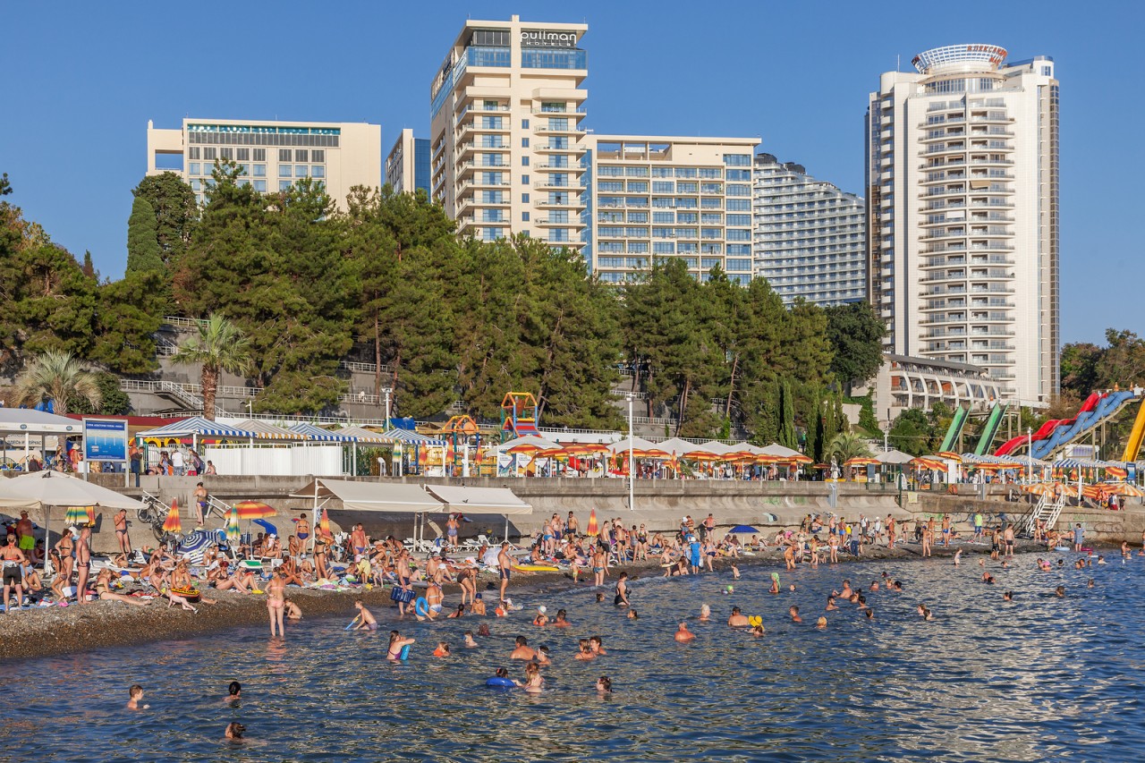 - или в Адлер, в район Нижнеимеретинской бухты — и испытывать недовольство лишь в битве за местечко на пляже:)