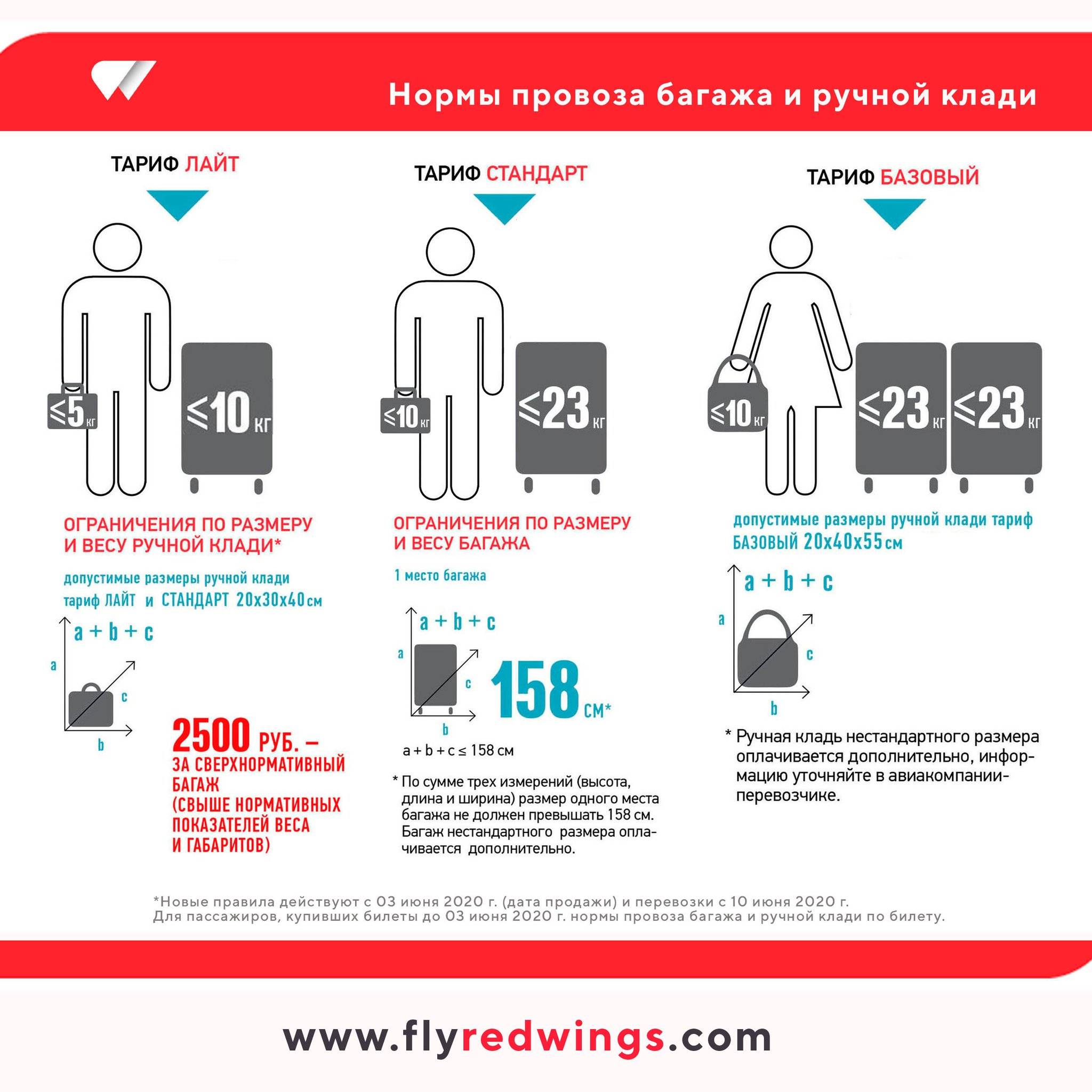- «Комфорт Базовый» — клиенты авиакомпании могут пронести на борт воздушного судна только один чемодан с предельно допустимым весом в 23 килограмма;
