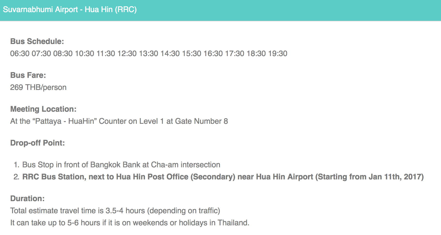 Расписание автобусов Суварнабхуми-Паттайя: 08:00, 10:00, 12:00, 14:00, 16:00, 18:00