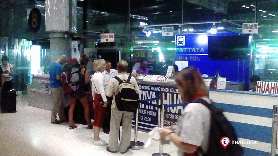 По пути, не доходя до фудкорта, прямо у выхода №8 с правой стороны видим заветную автобусную кассу, где можно приобрести билет до Паттайи и не только. Касса выглядит вот так:
