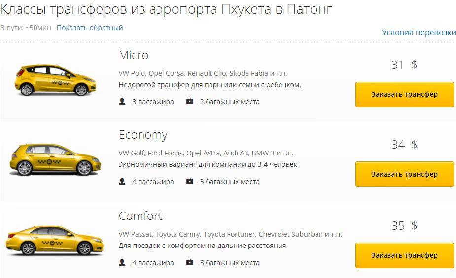 Сравнительная таблица цен на транспорт из аэропорта до Патонга