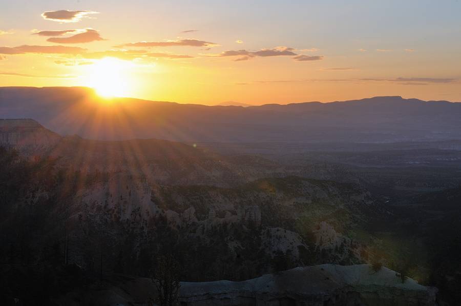После 10 минут метаний принимаем решение ехать к первой попавшейся «закатной» смотровой и попадаем на настоящий голливудский восход солнца. Штатив открываю, уже вываливаясь из авто и проклинаю «тупых американцев». Хотя по-моему, слегка протупили мы. Карту можно было взять накануне и вообще вспомнить географию чтобы понять – закаты и рассветы в каньоне Брайс можно наблюдать в одних и тех же точках, так как главный карниз лежит в плоскости север – юг. Это правило относится почти ко всем каньонам штата Юта в которых мы были.