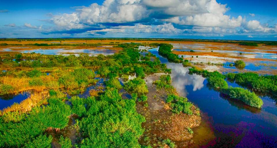 Уникальная ценность этой территории (1,5 млн акров) в штате Флорида заключается в дикой первозданности субтропиков, сумевшей сохраниться здесь почти в нетронутом виде. Свидетельство этого – редчайшие экземпляры растительного и животного мира, считавшихся безвозвратно ушедшими: голубые цапли, древний вид аллигаторов, красное мангровое дерево и т. д. Здесь насчитывается 2000 представителей деревьев и кустарников, количество крокодилов зашкаливает за 2 млн., водятся пумы, особи которых занесены в Красную Книгу; речные выдры.