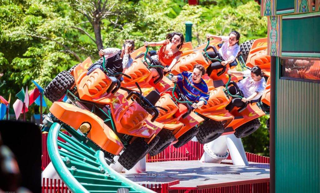 - «Journey to the West»: карусель с сидениями на цепочках, которая крутится под музыку.