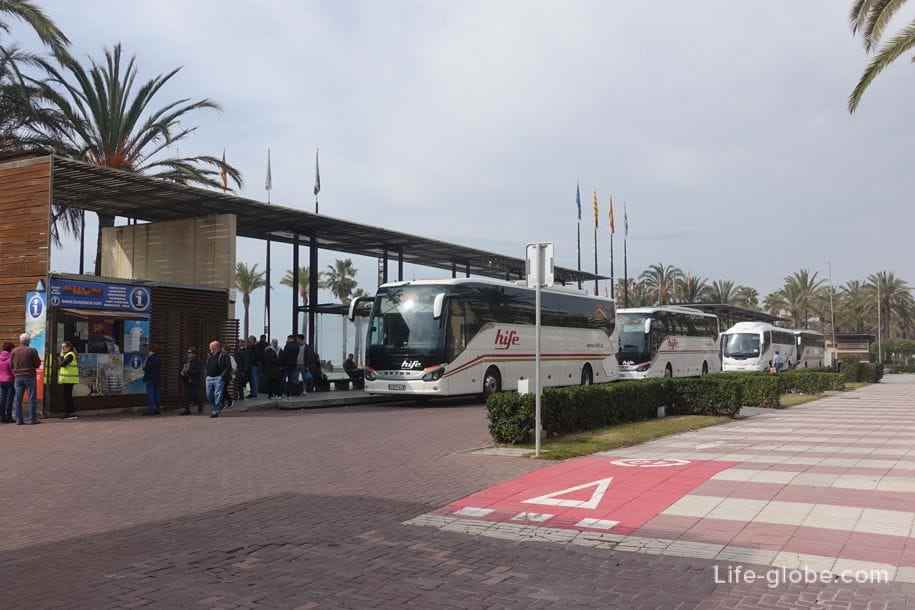 От каждой остановки по направлению Ла Пинеда или Таррагона отходятся большие автобусы белого цвета компании Plana: