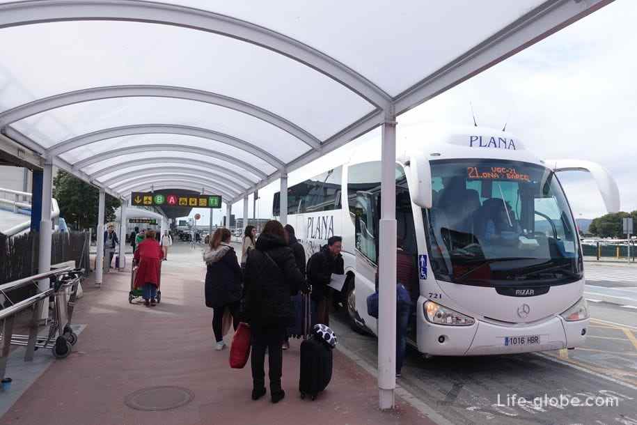 Отправляется транспорт от Passeig de Gràcia напротив станции метро, также сесть на автобус можно в аэропорту на терминалах Т1 и Т2 .