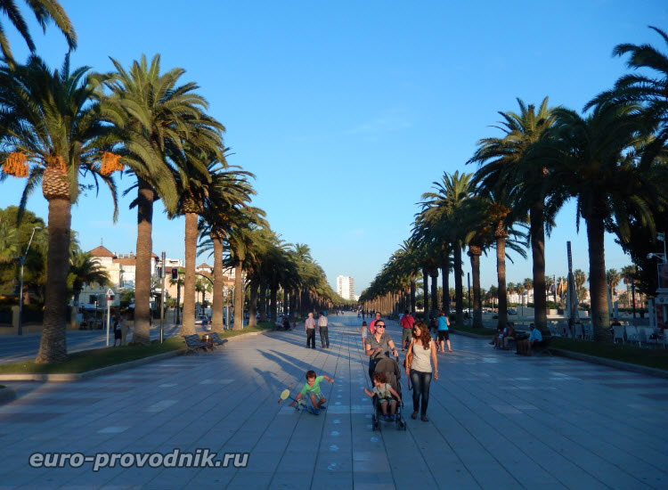 Значит, начинаем наш путь из центра Салоу, т. е., от проспекта Жауме I (или Хайме I, арагонская версия произношения). Проспект совсем не длинный, не заметите, как пройдете весь. Оглянувшись, увидите всю его протяженность: