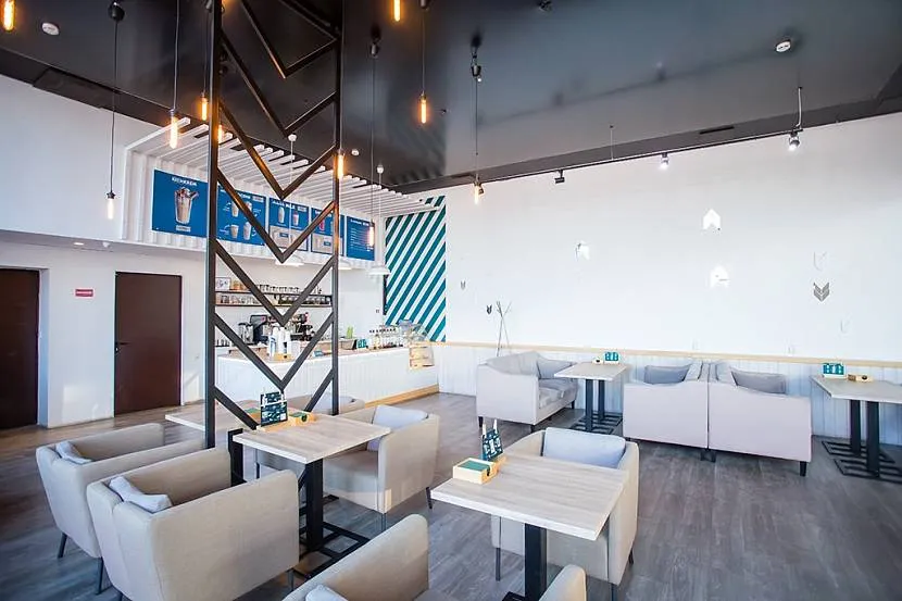 Минимализм. Интерьер кафе в стиле минимализм отличается лаконичностью и подходит для небольших помещений; главная цель дизайна — практичность и функциональность. В качестве основного цвета используется белый; его дополняют оттенки серого, коричневого и бежевого. Иногда, чтобы сделать атмосферу уютнее, добавляют насыщенные цвета: глубокий синий, зеленый, горчичный