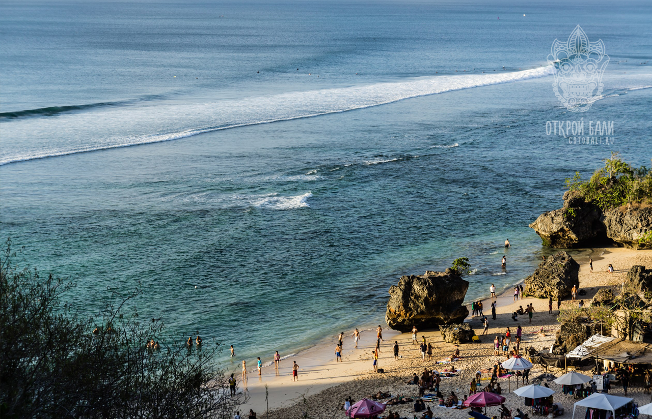 Пляж Бингин (Bingin beach) подойдет для серфинга, природолюбов и романтических фотосессий. Дно песчаное, волны и много пены. Есть несколько отелей с респектабельными бассейнами-инфинити.