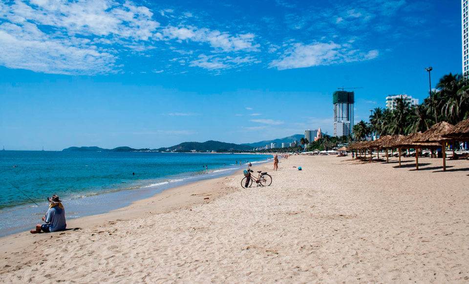 Приезжать в этот небольшой курортный город предпочтительнее в сухой сезон: начиная с апреля и заканчивая октябрём. Всё остальное время вам едва ли удастся насладиться прелестями пляжного отдыха из-за частых дождей и штормящего моря. Наилучший в Нячанге – именно муниципальный пляж. Его длина достигает 7 км. Загорать тут можно бесплатно, но, если вы захотите воспользоваться шезлонгом и зонтом – за прокат придётся заплатить небольшую сумму. Вам может показаться, что пляж состоит из белого песка, на самом деле – это мельчайшие обломки ракушек, причём разноцветных. За чистотой тут постоянно следят, пляж всё время убирают. Вход в воду удобен не только для взрослых, но и для маленьких туристов – дно пологое и ровное.