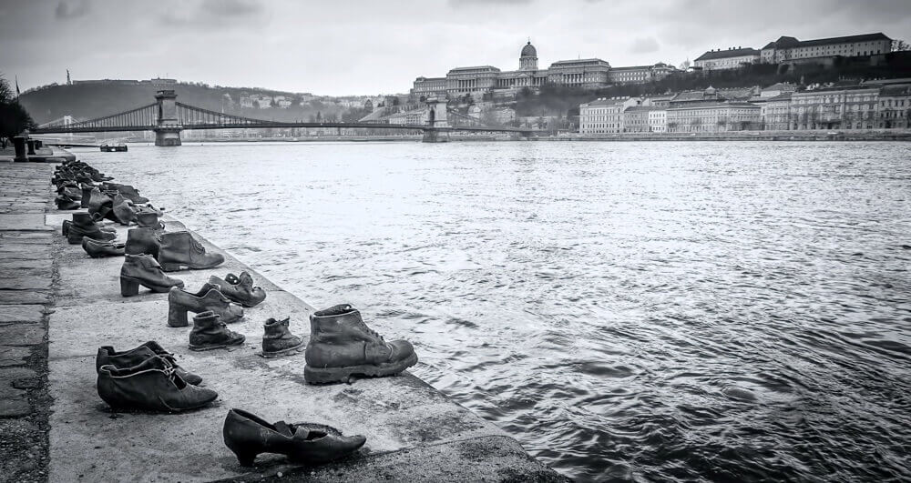 Еще один памятник в Будапеште, который связан с геноцидом еврейского населения в годы II мировой войны — Туфли на набережной Дуная. Он представляет собой композицию из 60 пар разной обуви – от грубых башмаков до детских ботинок.