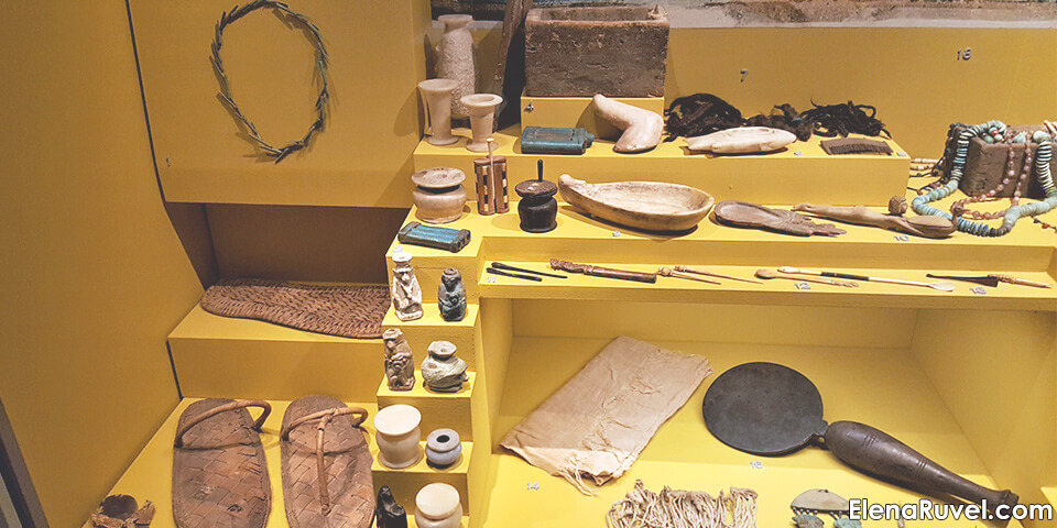 Экспозиция включает в себя множество керамических изделий, предметов быта и артефактов, найденных в ходе раскопок, которые рассказывают об укладе жизни, культуре и верованиях древних египтян.
