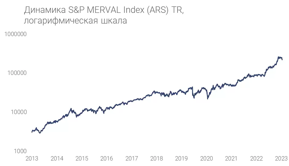 С марта 2013 года S&P MERVAL продемонстрировал доходность свыше 7000% в аргентинских песо. Феноменальная доходность показывает, что аргентинцы воспринимают фондовый рынок в качестве одного из активов, защищающих от неконтролируемого роста цен. Индекс лишь единожды снижался более чем на 50% с пика — в кризисном 2020 году.