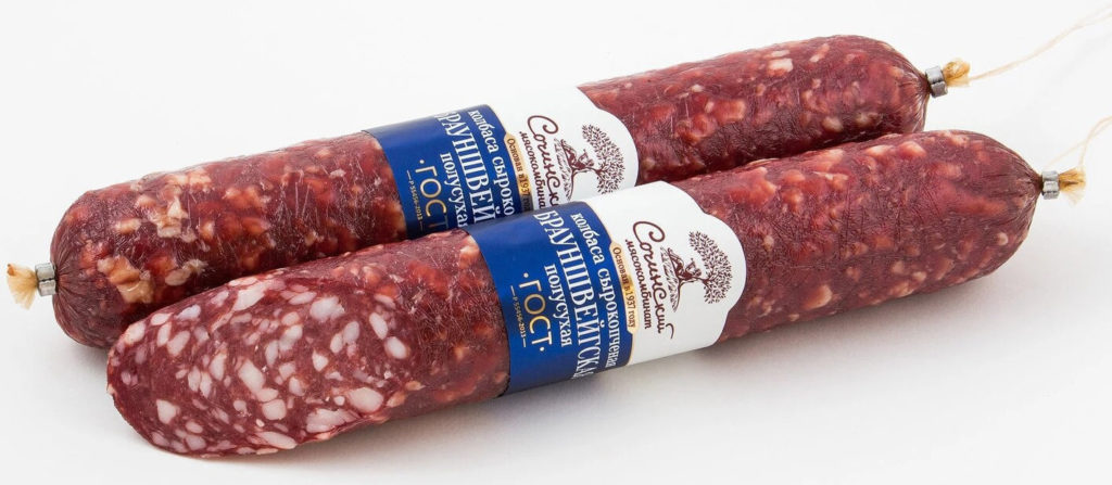 Сырокопченая брауншвейгская колбаса относится к классу мясных деликатесов высшего сорта.