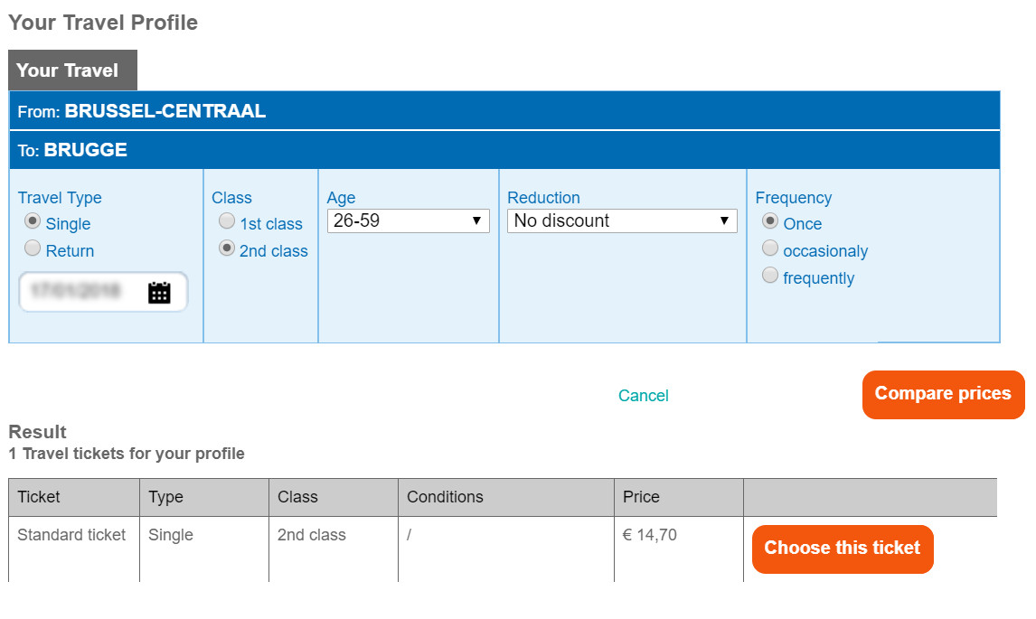 Поездка оплачивается в кассах вокзала, платежных терминалах или по интернету — на сайте железной дороги — www.belgianrail.be. Оплата по интернету иногда представляет трудности. Именной электронный билет требует распечатки, чтобы можно было предъявить его контролеру вместе с паспортом или правами.