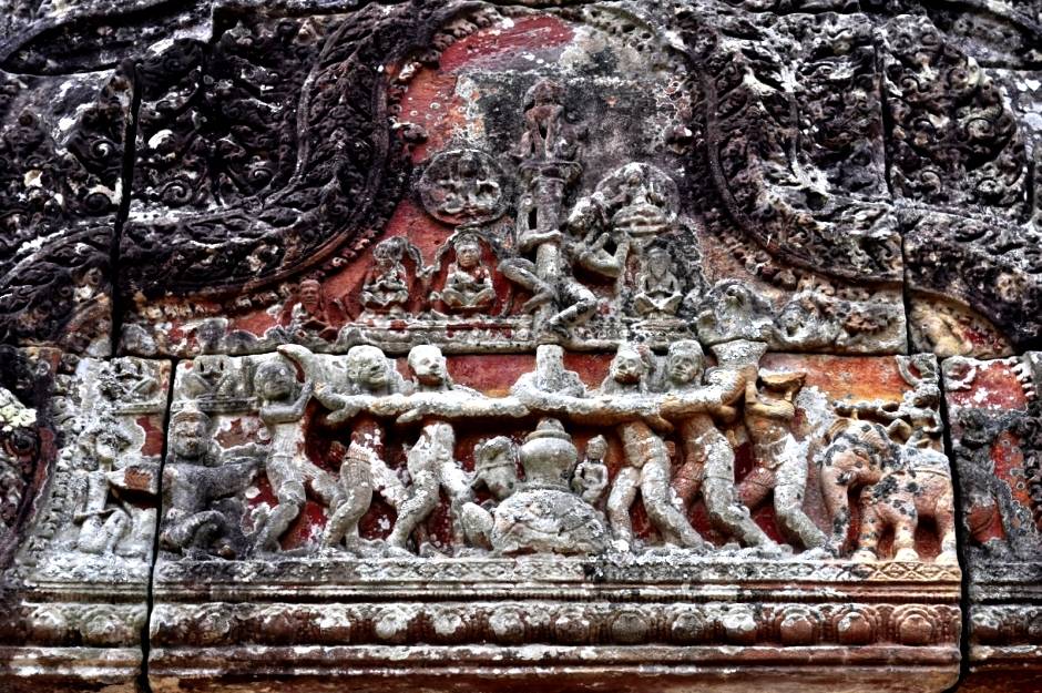 Южный, внешний фронтон четвертой башни украшает один из шедевров Преах Вихеара: каменные рельефы, изображающие «молочное море, пахтаемое (взбалтываемое) богами». Пятая башня несет на себе следы красной краски, которой она когда-то была выкрашена.